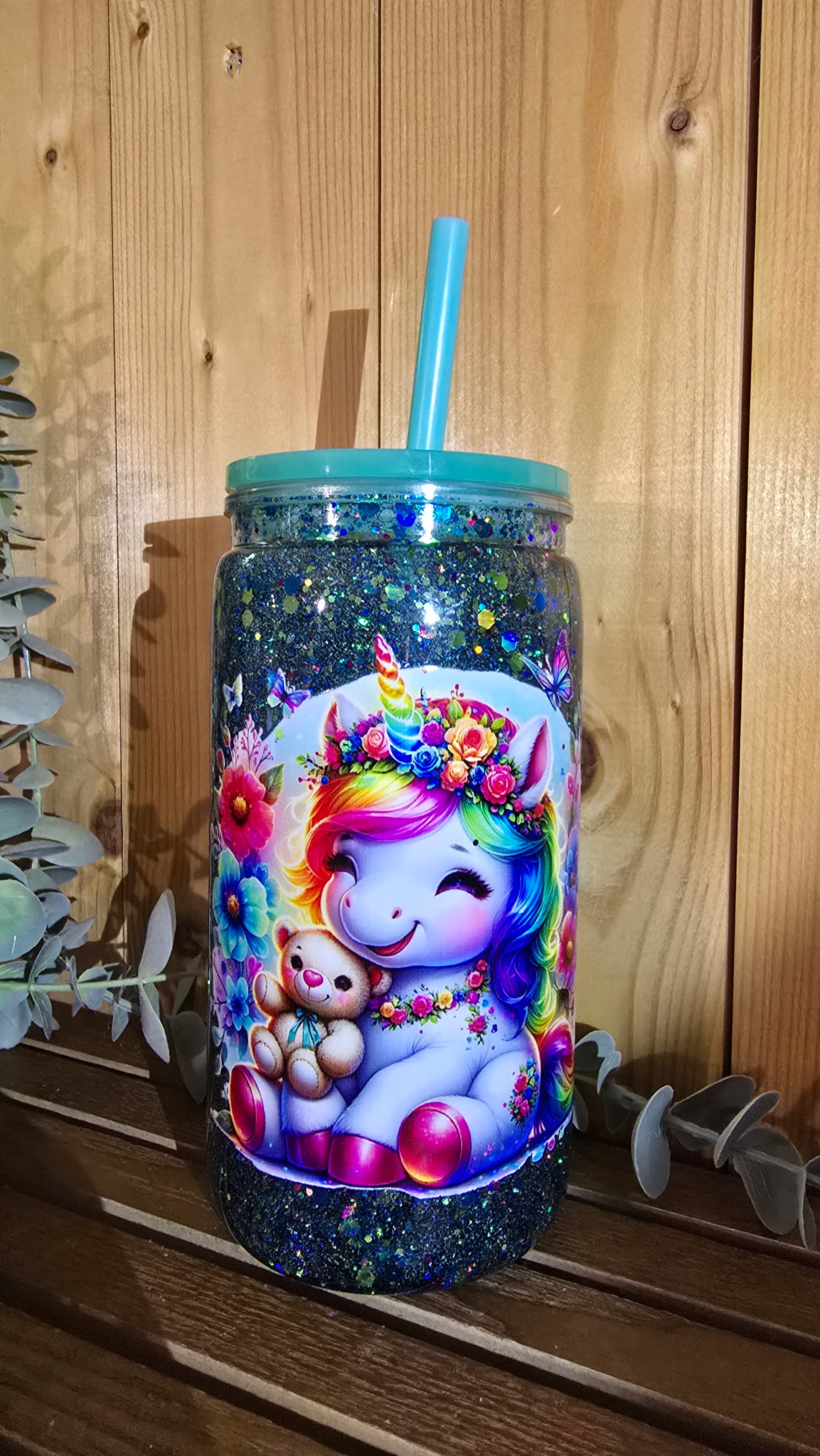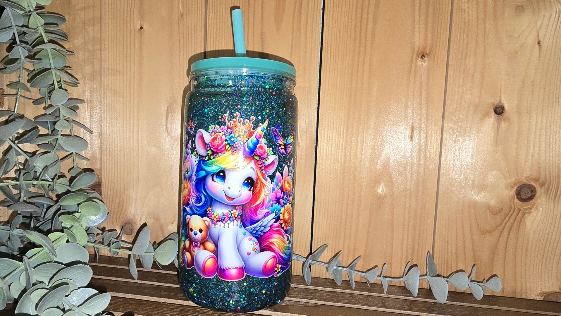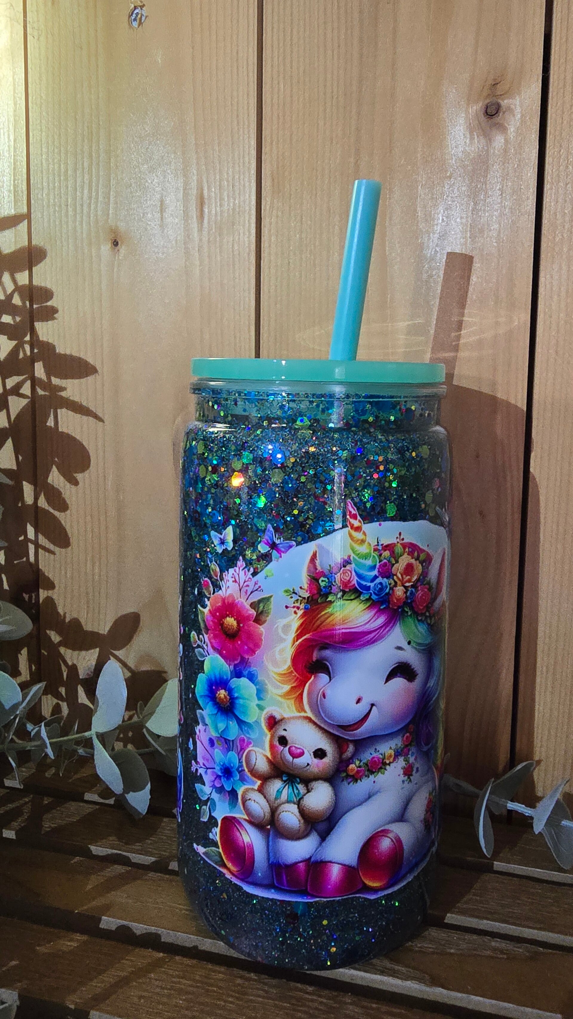 Het is een dubbelwandige beker. Op deze manier kunnen de glitters niet bij de inhoud.