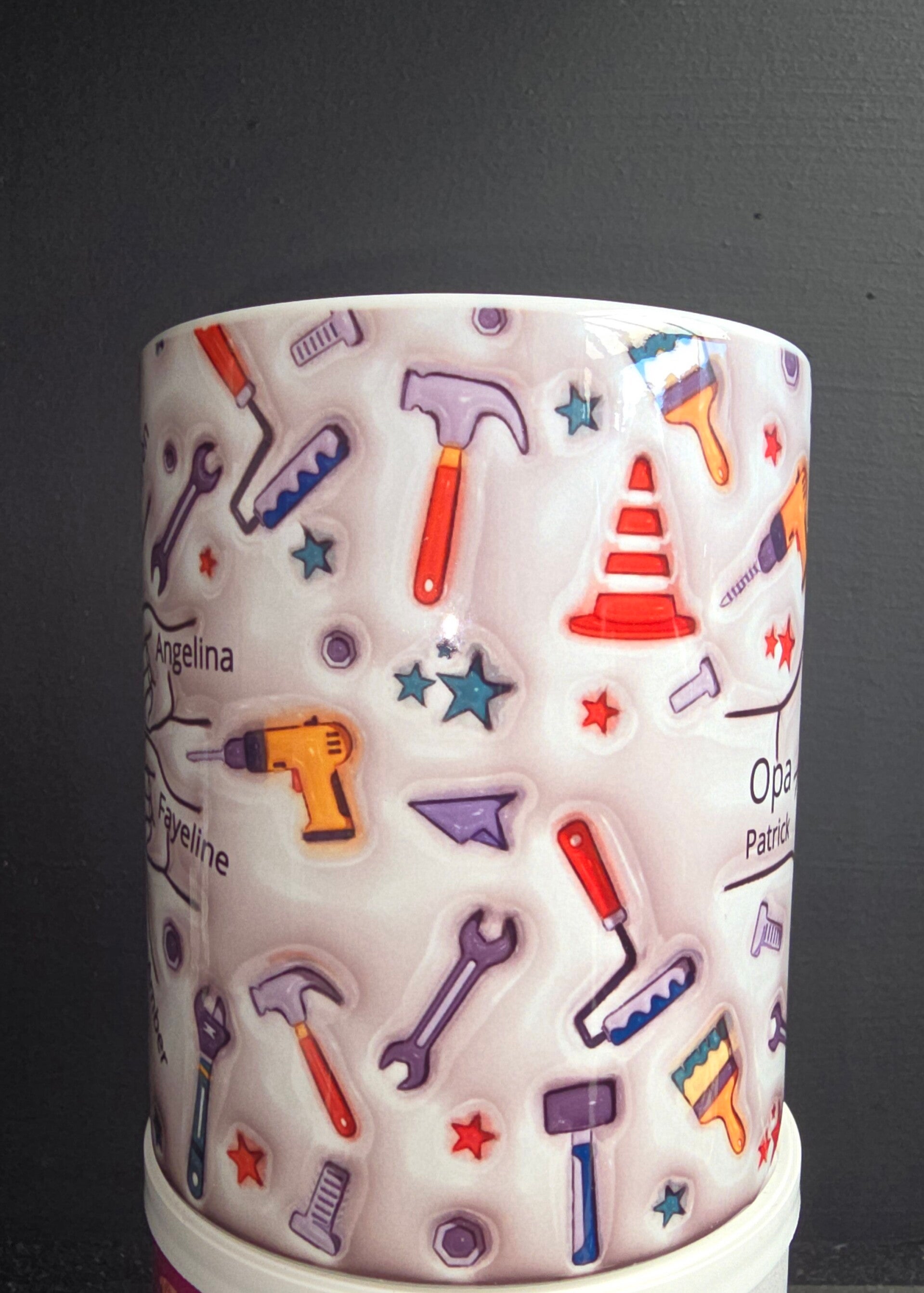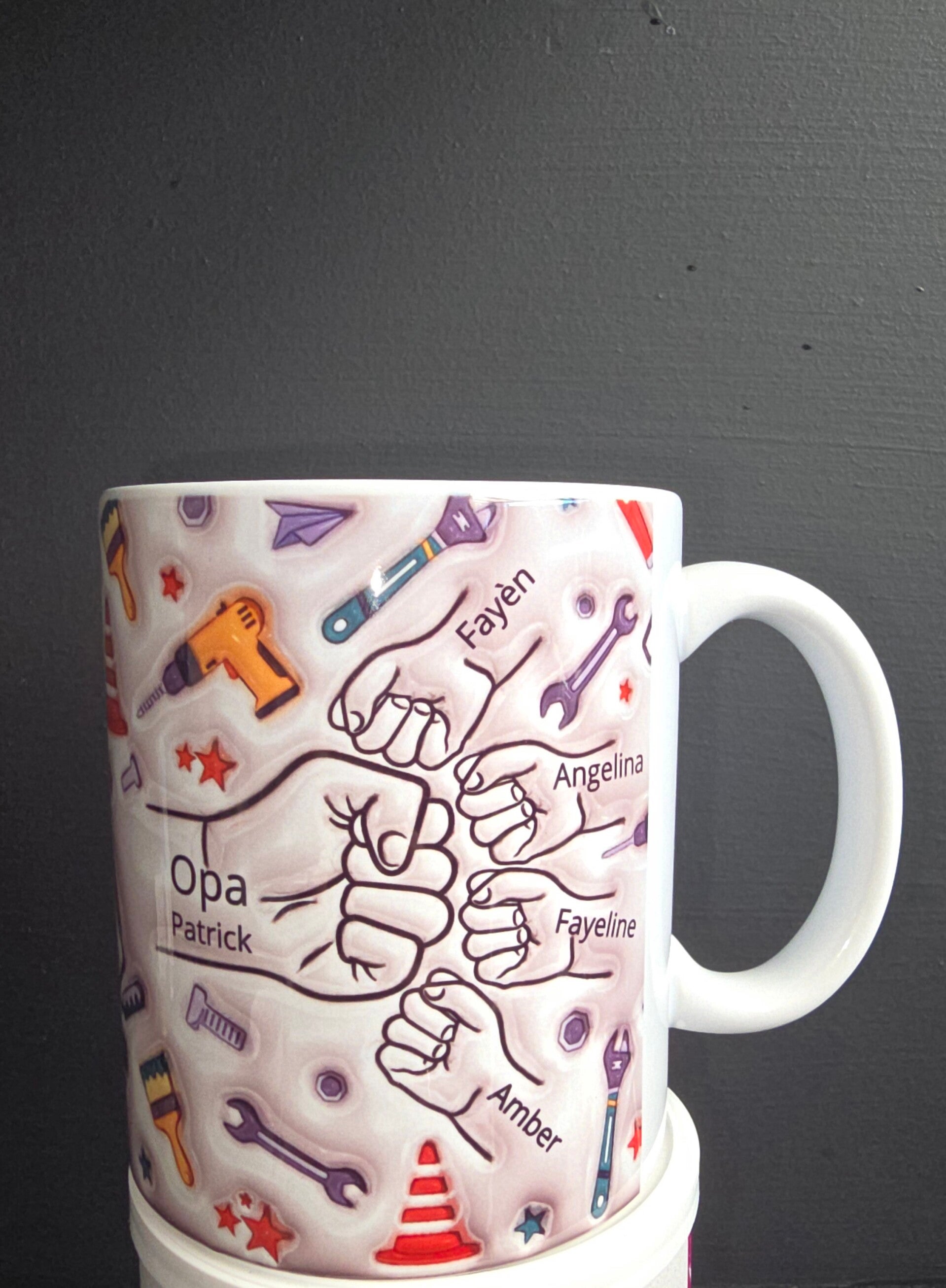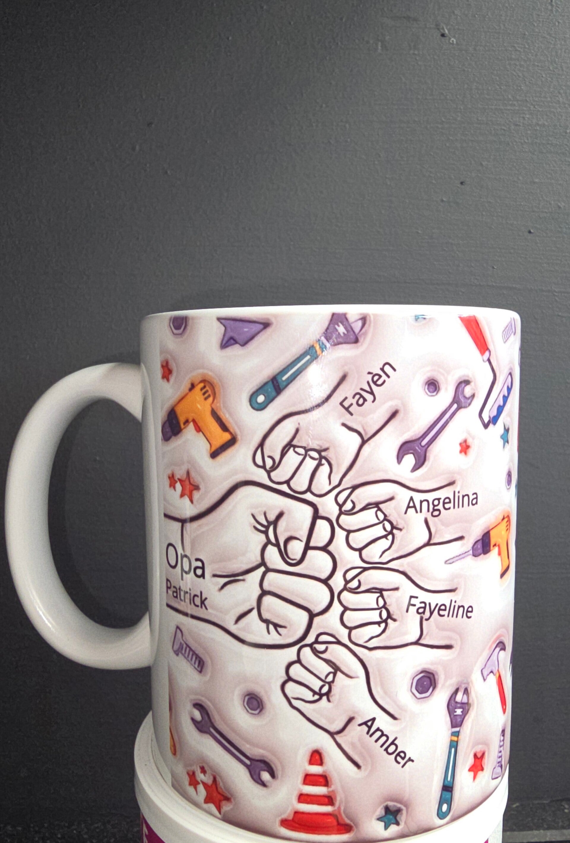 Vaderdag of gewoon leuk als kadootje. Hoe trots zou papa of opa met deze mok zijn. Een mok waar zijn naam op staat en de naam van zijn kinderen. Mogelijk om 1 tot 12 namen toe te voegen.