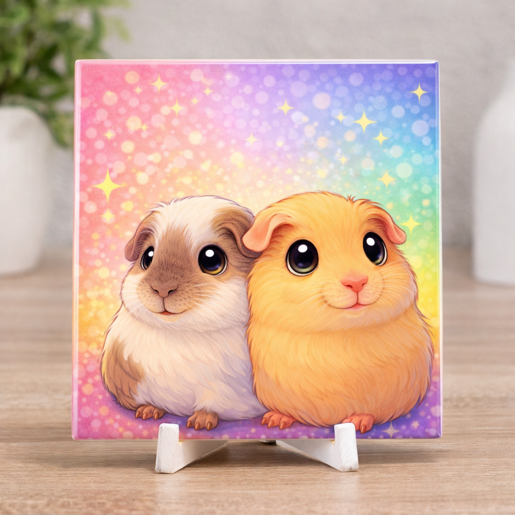 Leg de charme van jouw huisdier vast op een uniek cartoon tegeltje van 11 x 11 cm. Stuur een foto van je hond, kat, konijn, cavia of ander dier, en ik zet deze om in een speelse cartoonillustratie met een mooie, overlopende achtergrondkleur.